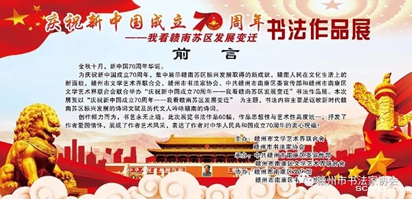 “庆祝新中国成立70周年---我看赣南苏区发展变迁”书法展预告 ![]() |