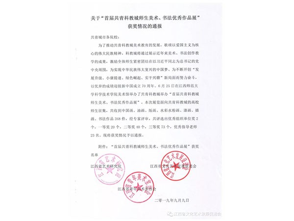关于“首届共青科教城师生美术、书法优秀作品展”获奖情况的通报 ![]() |