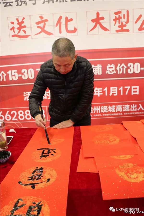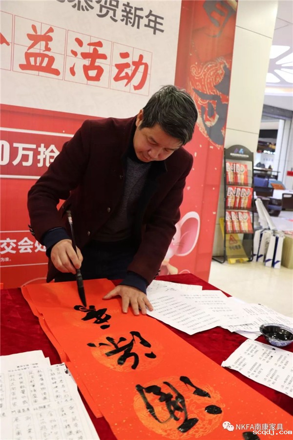 红红的春联,浓浓的年味,春联,又叫“春贴”“门对”,它以对仗工整、简洁精巧的文字描绘美好的形象,表达美好的愿望,是中国特 有的文字形式,是中国人文精神的体现。 在新春佳节即将到来之际,为弘扬传统文化艺术,营造喜庆节日氛围,给南康家具企业及广大市民送去新春祝福,2020年1月17日,区家具协会党支部携手南康家具品牌会展中心共同举办送“写春联,送文化”大型公益活动。 本次活动邀请四名赣州、南康本地著名书法家书写春联,活动现场,几位书法家挥毫泼墨,“一年四季行好运,八方财宝进家门”、“春风送福、喜气临门”等一幅幅饱含深情祝福的字跃然纸上,飘着淡淡墨香的火红春联以及一个个吉祥的“福”字在书法家的妙笔生辉下,成为了一幅幅精美的艺术作品。 天气寒冷,但还是有一大批家具企业业主及附近市民前来挑福字、选春联,获得作品的市民兴奋不已、爱不释手。现场人潮涌动,热闹非凡,年味十足。不少前来品牌会展中心购买家具的客户,停下来排队领取春联。 “运气这么好,过来买家具还有春联送啊!”一对从大余过来买家具的夫妻说到。 领取到春联的市民小心翼翼地将一幅幅春联铺好晾干 手执散发着墨香的大红春联,喜笑颜开。 区家具协会携手南康各大家具市场送春联公益活动已经连续举办8年,每年都吸引众多家具企业及市民过来领取春联祝福。据统计,本次活动4位书法家们共为200余位家具业主和市民朋友书写了360余副春联。 |