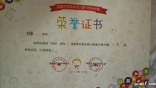 李星霏,女,6岁,就读于赣州市南康区幼儿园大班,兴趣爱好广泛,如唱歌、跳舞、架子鼓、篮球、画画等,荣获南康区幼儿园首届书香家庭称号;2016年12月荣获童画第五届全国小画家之星一等奖;2017年10月荣获“星雅图童画杯”赣州市少儿绘画大赛金奖;2018年4月荣获第十八届世界华人幼儿创意美术大赛金奖。 书画网/南野逸墨 |