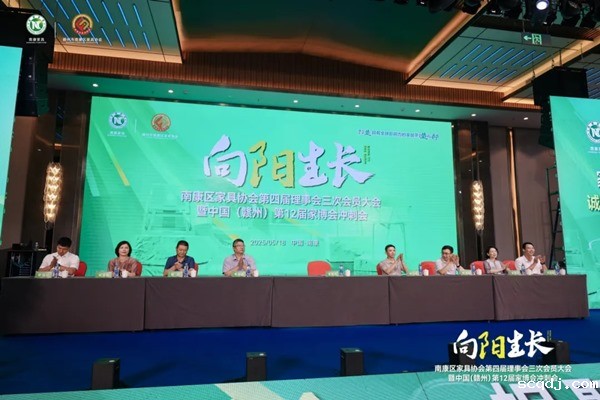 5月18日 赣州市南康区家具协会第四届理事会 三次会员大会 暨中国(赣州)第12届家博会冲刺会 在南康万佳酒店盛大举行! 区委常委、组织部部长刘日辉、 区委常委、常务副区长李成胜莅临大会 充分彰显区委、区政府对南康家具产业的 深切关怀 近千名南康家具人相聚一堂, 共叙情谊、共商发展,展望行业未来 共同呈现出一场团结一心、 士气振奋、谋划新篇的行业盛会! 2025年5月18日,“向阳生长”赣州市南康区家具协会第四届理事会三次会员大会暨中国(赣州)第12届家博会冲刺会在南康万佳国际酒店隆重举办。区委常委、组织部部长刘日辉,区委常委、常务副区长李成胜,赣州国际陆港党工委副书记蔡湖南,区人大常委会副主任谢兴,副区长余美华,区政协副主席刘芳艳,区家具产业集群发展中心党组书记刘勇明、主任陈珏,中国家具协会副理事长、中国家商联秘书长郭新文,木材节约发展中心实验室主任戚士龙 ,江西省家具协会会长刘伟,南康区家具协会会长罗海龙、秘书长杨剑,区直单位相关负责人,各乡镇(街道)负责人,驻区银行负责人,有关商协会负责人,赞助商和区家具协会全体会员,新闻媒体等一千余人参加大会。 区委常委、常务副区长李成胜在大会上讲话,他表示,受善锦书记、赣兴区长委托,代表区委区政府对家具协会2024年取得的成绩表示祝贺,协会充分发挥桥梁纽带作用,团结带领广大会员企业,积极应对消费市场低迷、中美贸易冲突等多重挑战,交出了一份亮眼的成绩单。希望新的一年,家具协会、家具人始终初心如磐、不骄不躁,加压奋进、砥砺前行。 对南康家具协会及全体家具企业提几点建议:一要始终坚持“逐梦世界”的理想、打造“百年老店”的目标,不断提升南康家具的全球影响力。二要始终坚持“信心比黄金重要”,坚定不移拓市场、增订单。三要始终坚持绿色转型升级,持续擦亮“健康环保南康好家具”金字招牌。四要始终坚持“质量是南康家具的生命”,矢志不渝提质量树品牌。 为圆满举办第12届家博会,他对全体家具人提出了几点希望:一是希望家具同仁们以匠心精神筹备家博会,细致做好展馆装修、展品准备、活动安排等组织工作;精心做好宣传推介工作;要全力以赴做好环境整治、市场整治、安全稳定等保障工作。二是希望家具同仁们以开放姿态迎接家博会。要树立“大产业”荣辱观;要弘扬“一家人”协作精神;要营造“大生态”发展环境。三是希望家具同仁们以优质服务护航家博会。要高标准做好接待服务;要高效率做好售后服务。 区家具产业集群发展中心党组书记刘勇明宣读了《关于成立南康绿色家具品牌联盟的批复》,为南康绿色家具品牌联盟走进人民日报进行预热宣传。 南康区家具协会会长罗海龙作第四届理事会2024年工作报告,对协会去年一年来的工作进行了全面回顾总结。2024年,南康家具以绿色转型为引擎,以质量攻坚为抓手,在“拼经济、促发展”的赛道上奋勇争先,彰显出产业强劲的抗风险能力与蓬勃生命力。 协会主要在九个方面的工作发挥了重要作用,取得了较好的成效:一是以“三全行动”为党建核心,实现党建与产业发展同频共振;二是组织近百家企业组团出海抢订单,国际知名度和影响力大幅提升;三是持续发动近百家家具企业霸屏国内各大展会,展现产业的活力与韧性;四是协助举办“一节三会”,南康家具火出圈;五是是持续推动实施南康家具“百城千店”项目落地,国内国际多点开花;六是积极开展行业活动,提升产业活力和凝聚力;七是紧跟行业立标准,积极推动“南康制造+深圳标准”质量提升行动开展;八是充分发挥桥梁纽带作用,对外交流合作走深走实;九是加强自身建设,延伸服务触角,组织建设卓有成效。 南康区家具协会常务副会长邓旺强作第四届理事会2024年财务收支情况报告。 南康区家具协会常务副会长温世通宣读了《关于增补赣州市南康区家具协会第四届理事会副会长的议案》,经现场举手表决,议案全票通过。 为新增补的副会长颁发荣誉证书 区家具协会秘书长杨剑宣读了关于表彰赣州市南康区家具协会2024年度“优秀副会长单位”、“优秀理事单位”、“优秀会员单位”的决定。 现场为2024年度“优秀副会长单位”、“优秀理事单位”、“优秀会员单位”颁奖。 赣州市南康区家具协会2025年会盛典 中国家具协会副理事长、中国家商联秘书长郭新文上台致辞,表达了对南康家具未来的殷切期望。 江西省家具协会会长刘伟出席并致辞,对南康区家具协会取得的成绩予以肯定。 木材节约发展中心实验室主任戚士龙表示,南康家具产业近年发展态势迅猛,产业结构进一步优化,为我国木材产业发展贡献了南康力量。 区家具协会与电商协会、物流协会、木工机械协会、跨境电商协会、家具材料商会、南康区涉税专业服务行业协会签署了战略合作联盟协议。 现场颁发了“2025年度南康家具行业战略合作伙伴牌匾”。 现场为行业发展做出积极贡献的企业颁发了2024年度“特别贡献奖”荣誉证书。 家具协会自媒体代表合唱《相亲相爱》 师范大学家居现代产业学院学生表演舞蹈《whiplash》 映红声乐罗月老师、金慨信刘青演唱《如愿》、《不要慌太阳下山有月光》 南康心智青、凤舞潮模表演时尚服装秀 师范大学家居现代产业学院学生演唱《我要你》、《若月亮还没来》 “鼓