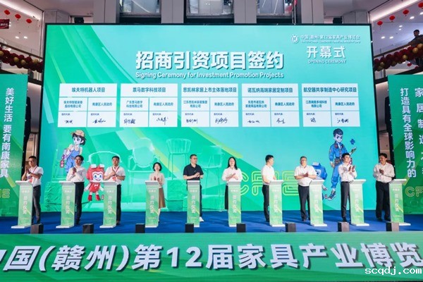 今天的南康 万商云集、高朋满座 处处洋溢着 欢乐、喜庆、热烈的盛会氛围 欢迎海内外家具人共襄盛举 今天上午 中国(赣州)第12届家具产业博览会 在米兰国际家居城开幕 省政府副省长史可出席并宣布开幕,省政府副秘书长王海涛,市委副书记、市长李克坚,意大利对华友好协会主席伊琳娜·皮韦蒂,省林业局党组书记、局长黄俊,中国家具协会理事长徐祥楠,中国林产工业协会会长周鸿升,省工信厅一级巡视员江明成,深圳家具行业协会主席侯克鹏,市委常委、区委书记何善锦,市委常委、副市长黄蓬勃,市人大常委会副主任陈黎,市政协副主席朱敏,区委副书记、区长李赣兴以及国家有关行业协会领导,省直有关单位领导,省、市现代家具产业链链长制工作领导小组成员单位领导和各部委挂职领导,有关高校领导,知名企业家和招商项目签约嘉宾,国内大型电商平台和企业、国内行业协会和展会主办方,国外商协会和企业嘉宾,香港经贸考察团,新闻媒体记者,知名卖场和行业经销商平台、南康家具“百城千店”合作商、全国各地经销大商和采购商代表等800余人出席开幕式。赣州市现代家居产业链链长、副市长陈阳山主持开幕式。 史可、王海涛、伊琳娜·皮韦蒂、黄俊、徐祥楠、周鸿升、江明成、侯克鹏、何善锦、黄蓬勃、陈黎、朱敏、李赣兴共同推杆启动开幕! 何善锦在致辞中表示,过去一年,南康在省委省政府、市委市政府的坚强领导下,在国家部委、省市部门、行业协会、业界同仁的关心支持下,以顽强拼搏的毅力和斗志,推动家具产业实现逆势上扬、蓬勃发展。 我们吹响绿色革命号角,举全区之力推进家具企业环保整改、环境整治,让健康环保绿色成为南康家具新的核心竞争力,在竞争日益激烈的市场中突出重围。我们持续激活创新动能,推动产业数智化与生态链深度融合,加速家居新质生产力发展。我们持续进军国际国内大市场,不断做旺南康家具销售,在“一带一路”国家甚至全球市场抢占更多的市场份额。我们坚持招大引强、靠大联强、扶优扶强“三强”战略,精准铸链强链补链,稳住并不断壮大家具产业基本盘。我们坚持标准引领、质量提升,追求长期价值、可持续发展,打造百年老店、品牌企业。放眼未来,南康将在绿色化、数字化、智能化、国际化的征程上阔步前行,加快“打造具有全球影响力的家居制造之都”,“让世界有家的地方就有南康家具”。 徐祥楠在致辞中代表中国家具协会向第12届家博会的成功举办表示热烈的祝贺。徐祥楠表示,近年来,南康区深入贯彻江西省政府“1269”行动计划,推动南康家具开启高质量、品牌化、现代化的发展,以绿色革命为引领,推动环保技术升级,高水平建设数字工厂,引领产业数字化转型,为推动家具行业稳健发展贡献了积极的力量。希望南康家具坚持提质增效与抢抓市场相结合,以匠心铸品牌,以绿色谋未来,共同书写中国家具产业现代化建设的崭新篇章。 周鸿升在致辞中表示,近年来,南康家具产业不断探索现代化建设创新发展之路,同时注重品牌建设,不断提升“南康家具”的品牌知名度和美誉度,让南康家具的品牌形象深入人心。本次家博会不仅是南康家具产业辉煌成就的全景式展陈舞台,更是点燃行业创新引擎、加速产业蝶变升级的重要契机。未来,中国林产工业协会将继续发挥协会的桥梁和纽带作用,整合各方资源,为南康家具产业的发展提供更多的政策支持、技术指导和市场信息。 开幕式上,中国家具协会副理事长、中国家具协会销售商专业委员会主席王大为,哈萨克斯坦阿斯特公司总经理阿里斯坦分别作了发言。他们对南康家具以技术升级响应市场趋势的前瞻性与执行力给予充分肯定,期待通过本次家博会,与南康家具开启更加深度的合作,共同创造美好的未来。 李克坚为赣州市现代家居产业链特别顾问颁发聘书。 周鸿升为南康区人民政府颁发“林产工业新质生产力领跑区”荣誉牌。 开幕式现场举行签约仪式 分五批次进行国内外集采签约 以及招商项目签约 其中国外集采签约总金额超2500万美元 国内集采签约总金额超3500万元 签约招商项目15个 总投资约60亿元 与会领导嘉宾参观展会现场 本届家博会 聚焦“绿色化、数字化、智能化、国际化”的 办展思路 深入挖掘家居文化元素 实行“一展双主馆” 主会场定在家居小镇会展中心和 米兰国际家居城 本届家博会将对外全面宣传推介绿色南康好家居 展示南康家具绿色转型的最新成果 将面向全国全品类的家居品牌进行招商 多领域、多维度展示 国内不同品牌、不同类别的家居产品 同时 将汲取近期国内外展会的先进经验 通过各企业家具新品爆品 展示绿色环保、国潮美学、跨境电商 智能家居、健康养老 校用家具等领域的新成果 引领中国家居消费新潮流 本届家博会将进一步巩固近年来南康家具“抱团出海”的成果 邀请欧洲三国、东南亚三国、中亚五国等 近100名外国嘉宾和采购商参加 通过战略合作、采购签约 供需对接会等形式 进一步夯实南康家具与国际合作的基础 增强本土家具企业“走出国门” 抢占国际市场的信心 本届家博会聚焦“健康环保、绿色转型” 这不仅是对南康家具产业发展的新要求 更是对全球家具行业发展趋势的深刻把握 南康通过积极推广水性漆 在实木家具领域掀起了绿色革命 为行业树立了环保典范