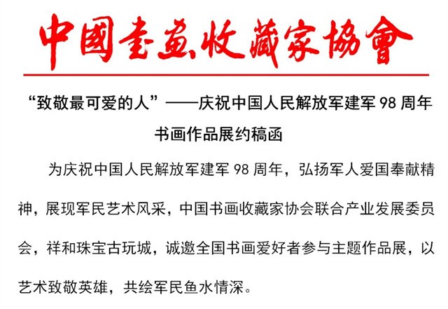 “致敬最可爱的人” ──庆祝中国人民解放军建军98周年书画作品展约稿函 ![]() |